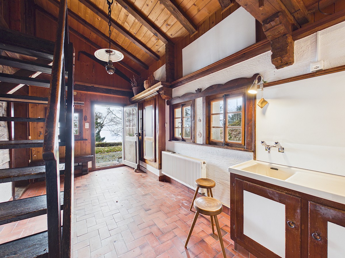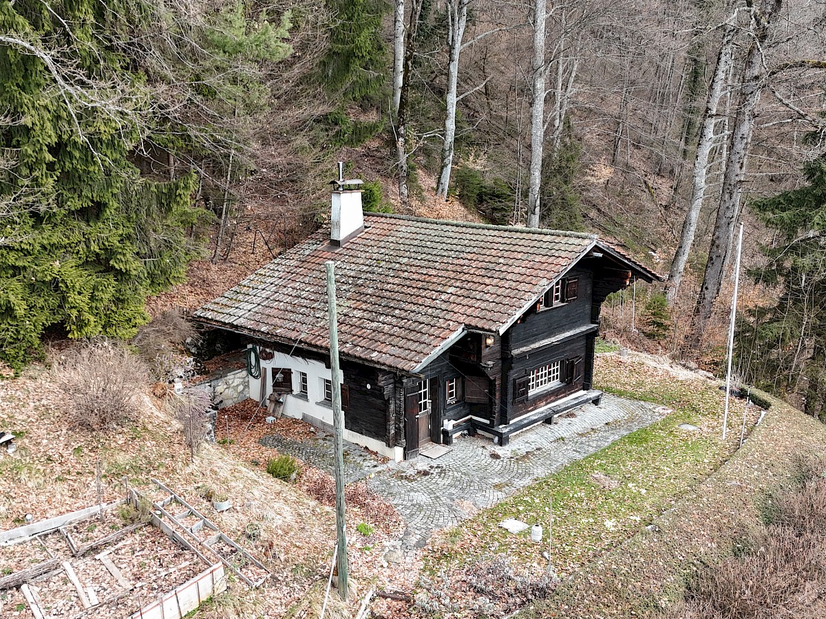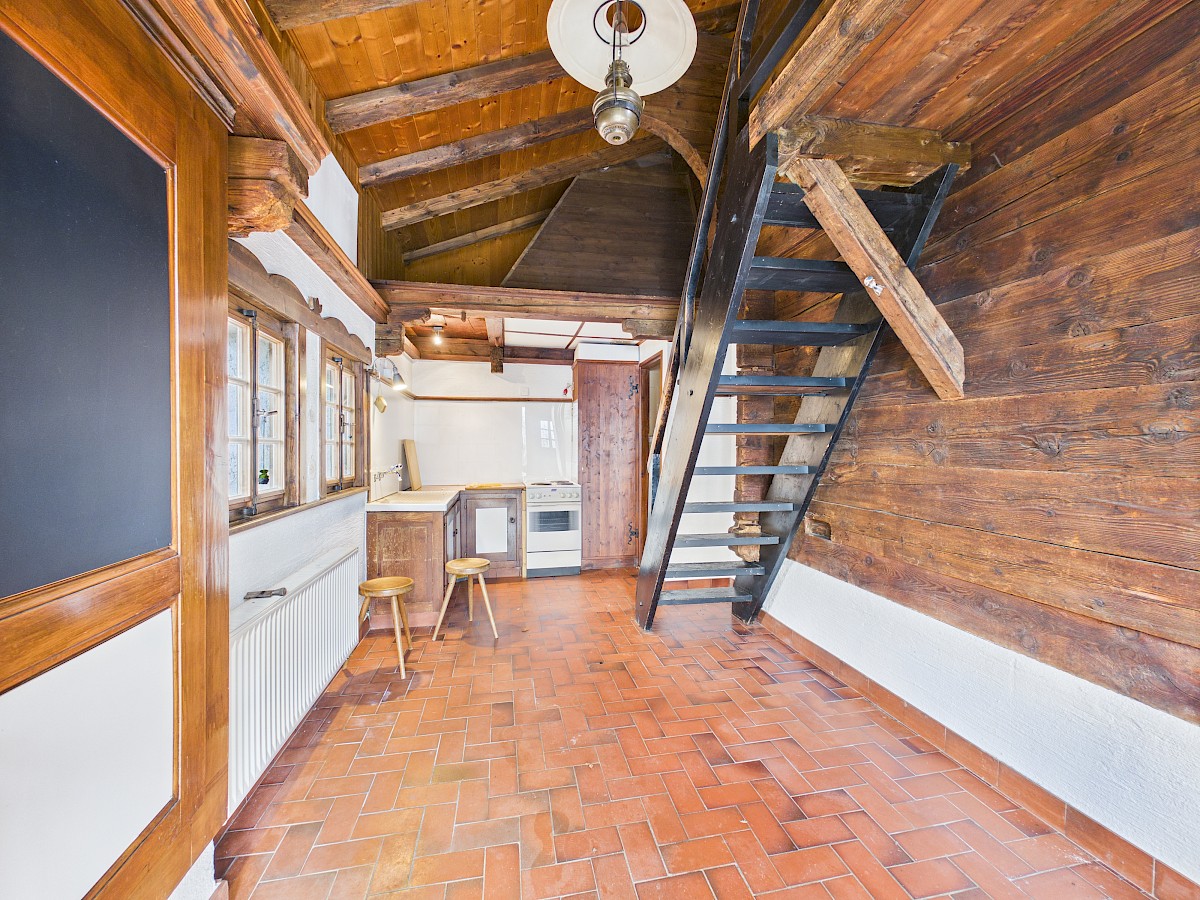 D’origine ancienne (env. 1750) et soigneusement reconstruit en 1963, le chalet a su conserver tout son cachet, avec ses matériaux chaleureux et son atmosphère typique. Réparti sur deux niveaux, il offre aujourd’hui un potentiel de rénovation intéressant, laissant la liberté de repenser les espaces selon ses envies et de créer un lieu de vie unique, à son image.